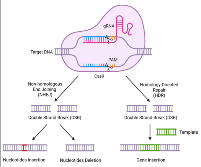 Figura 1. Mecanismo CRISPR/Cas9 en la edición del genoma