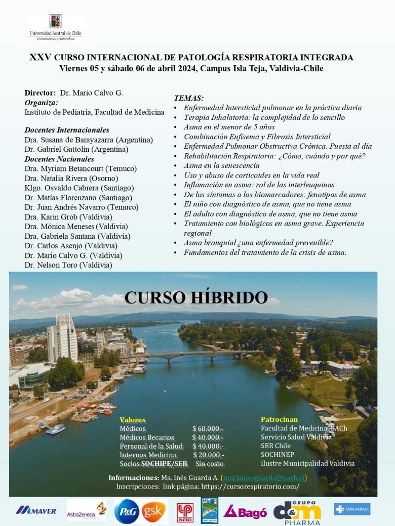 Encuentro científico, dirigido por el doctor Mario Calvo Gil, es apoyado por SOCHIPE Filial Los Ríos y la Sociedad Chilena de Enfermedades Respiratorias. En esta oportunidad expondrán los especialistas argentinos Susana de Barayazarra y Gabriel Gattolin.