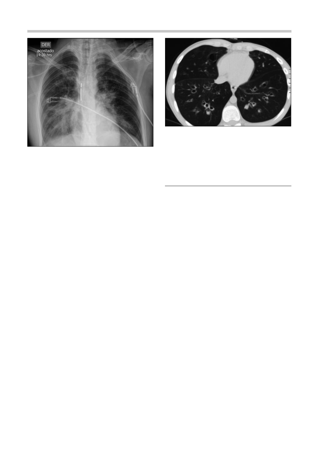 pulmonares intersticio-alveolares perihiliares bilaterales.